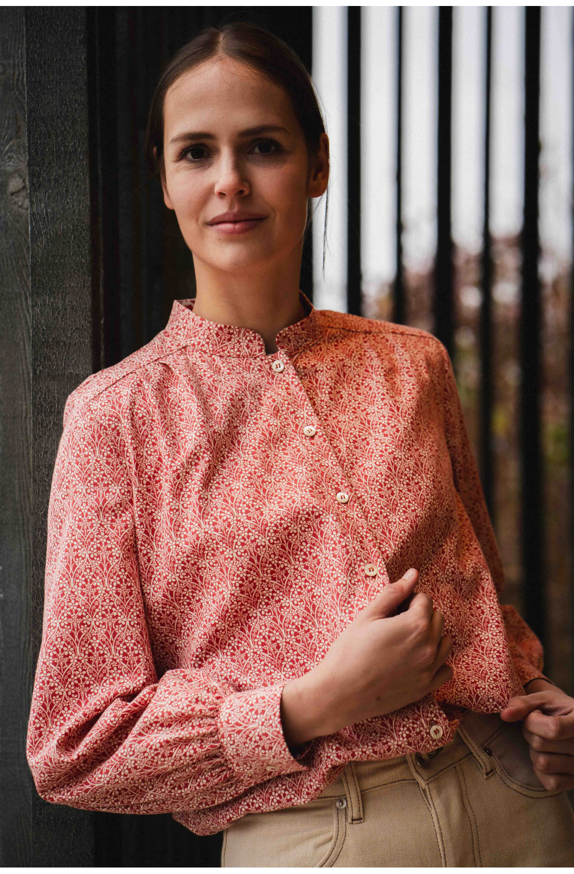 Unser Credo? Wir verarbeiten die besten Stoffe und bemühen uns um besondere Schnitte. Für diese Bluse haben wir uns für einen wunderbaren Liberty of London Blumen Stoff entschieden, hergestellt und verarbeitet in Norditalien. Und ganz nebenbei erwähnt – sie lässt sich ganz einfach und wunderbar bügeln.