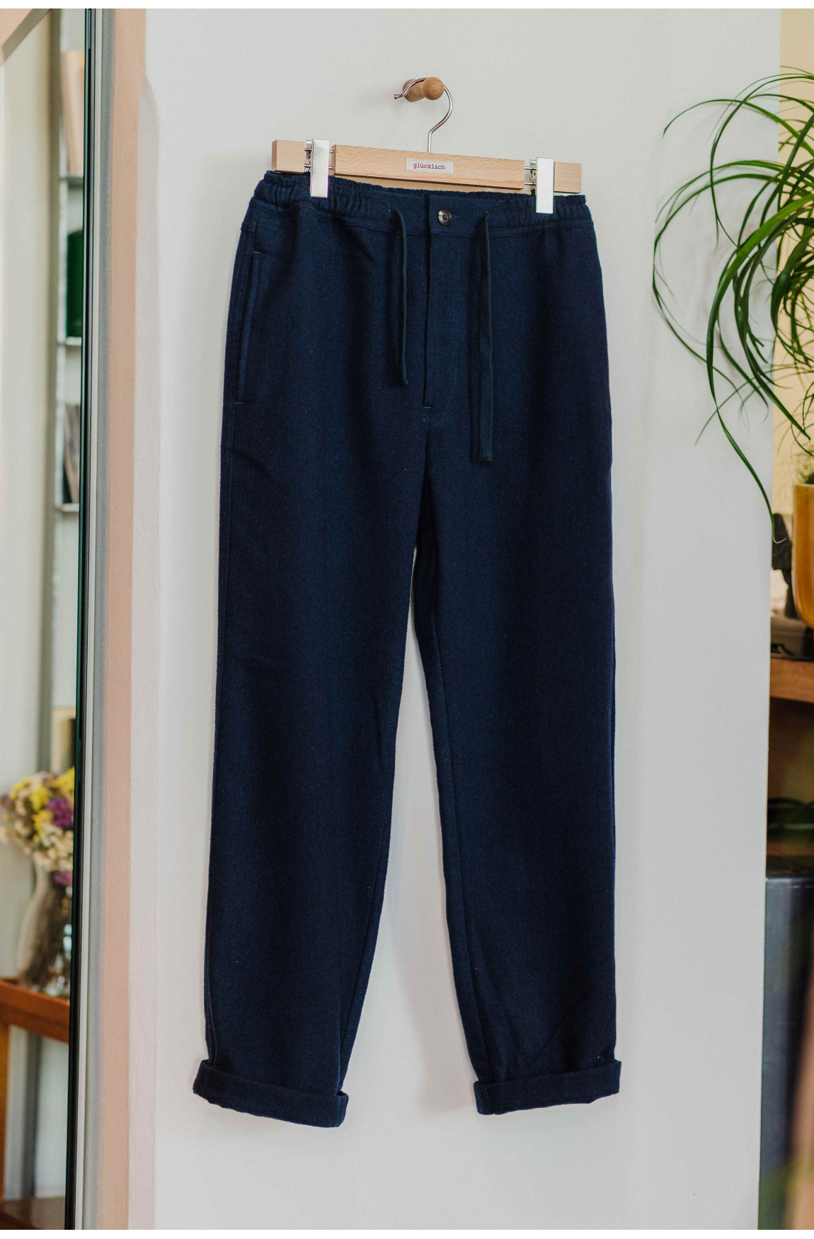 Elegante Jogger Hose aus hochwertigem Wollflanell. Die Hose hat einen elastischen Bund und eine sehr bequeme Passform.