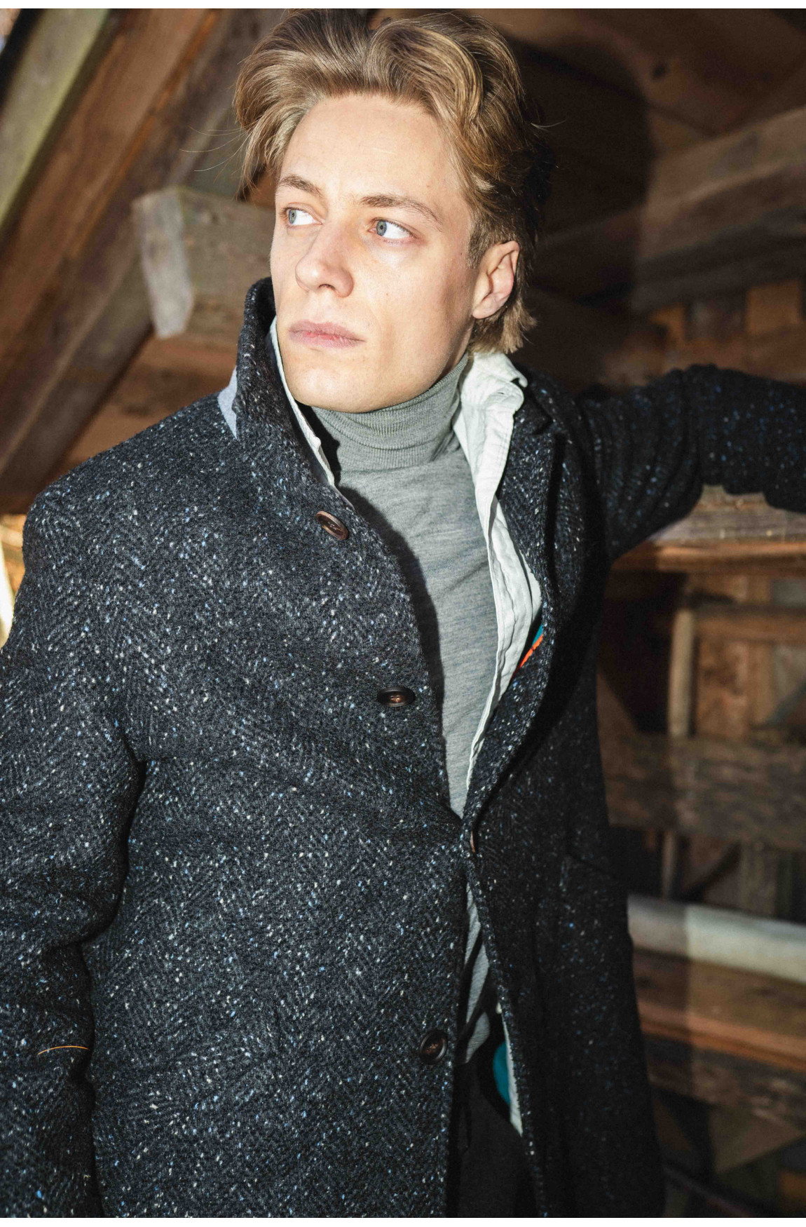 Coat made from original tweed fabric produced in the Alps.