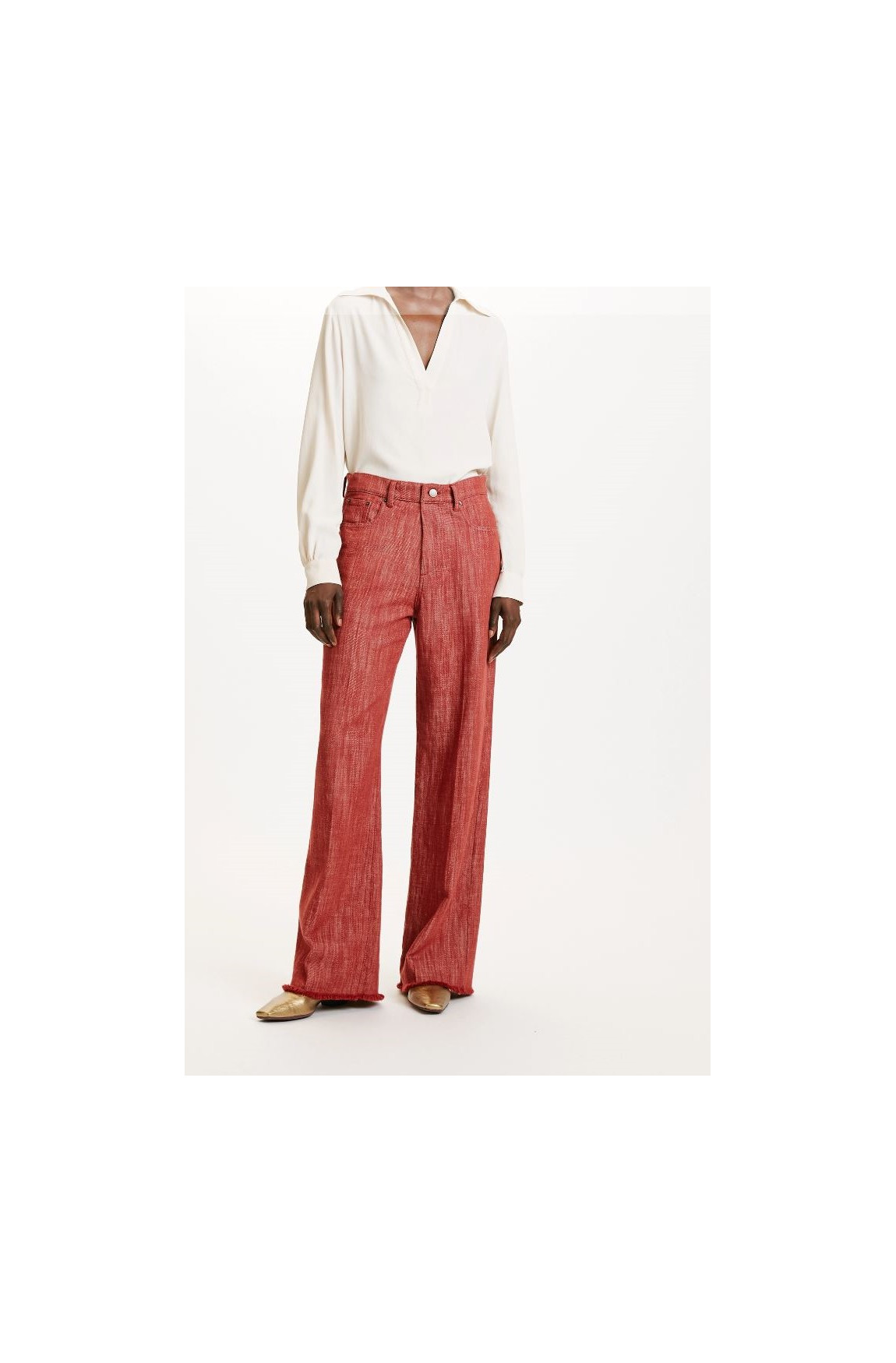 Trousers made from sturdy cotton denim. Regular waist and straight leg with frayed leg opening.