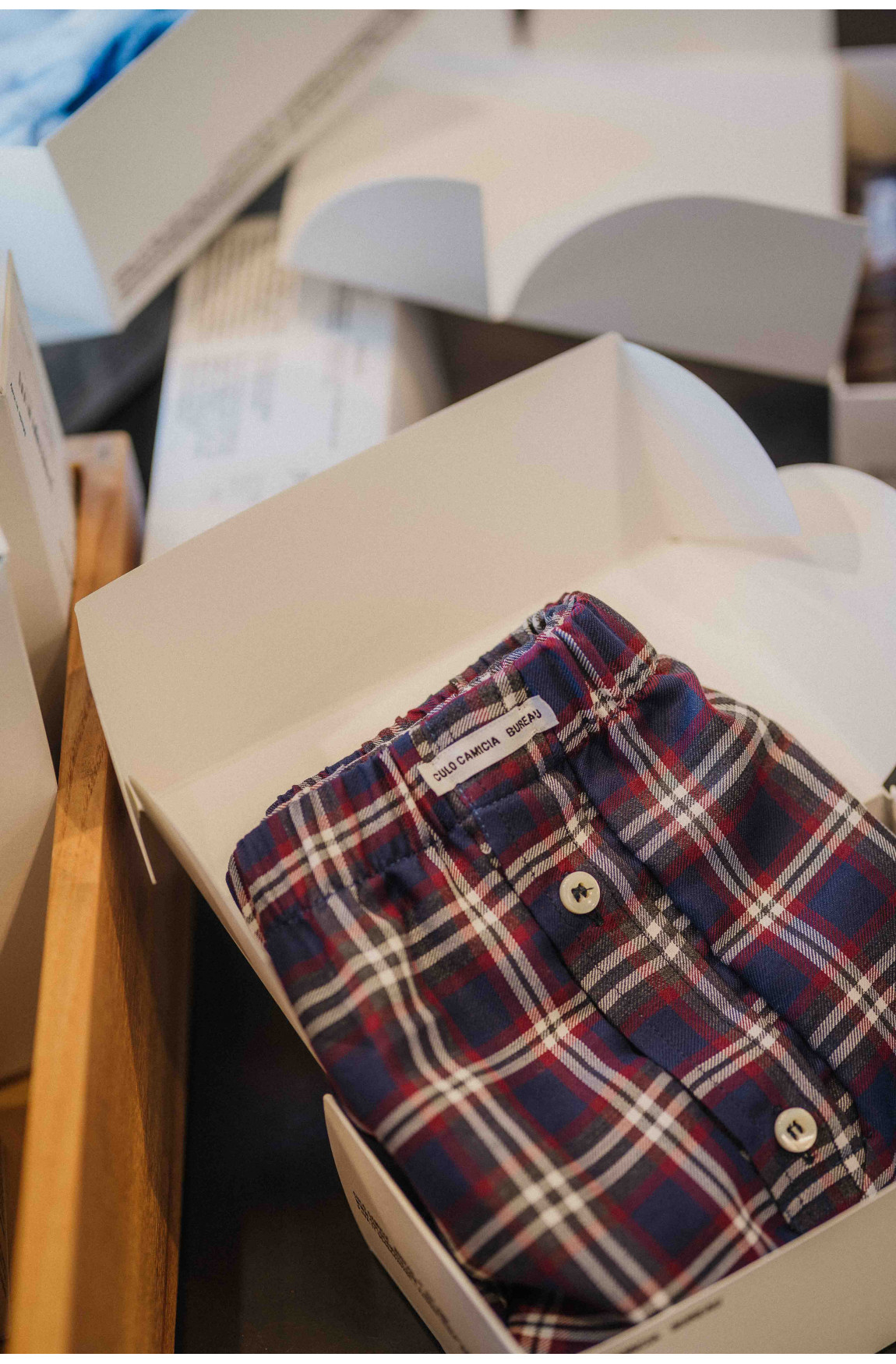Boxer realizzati in collaborazione con il progetto start-up CULO CAMICIA. I materiali di scarto e le camicie singole della nostra collezione vengono trasformati in boxer. 100% unici - 100% upcycled
