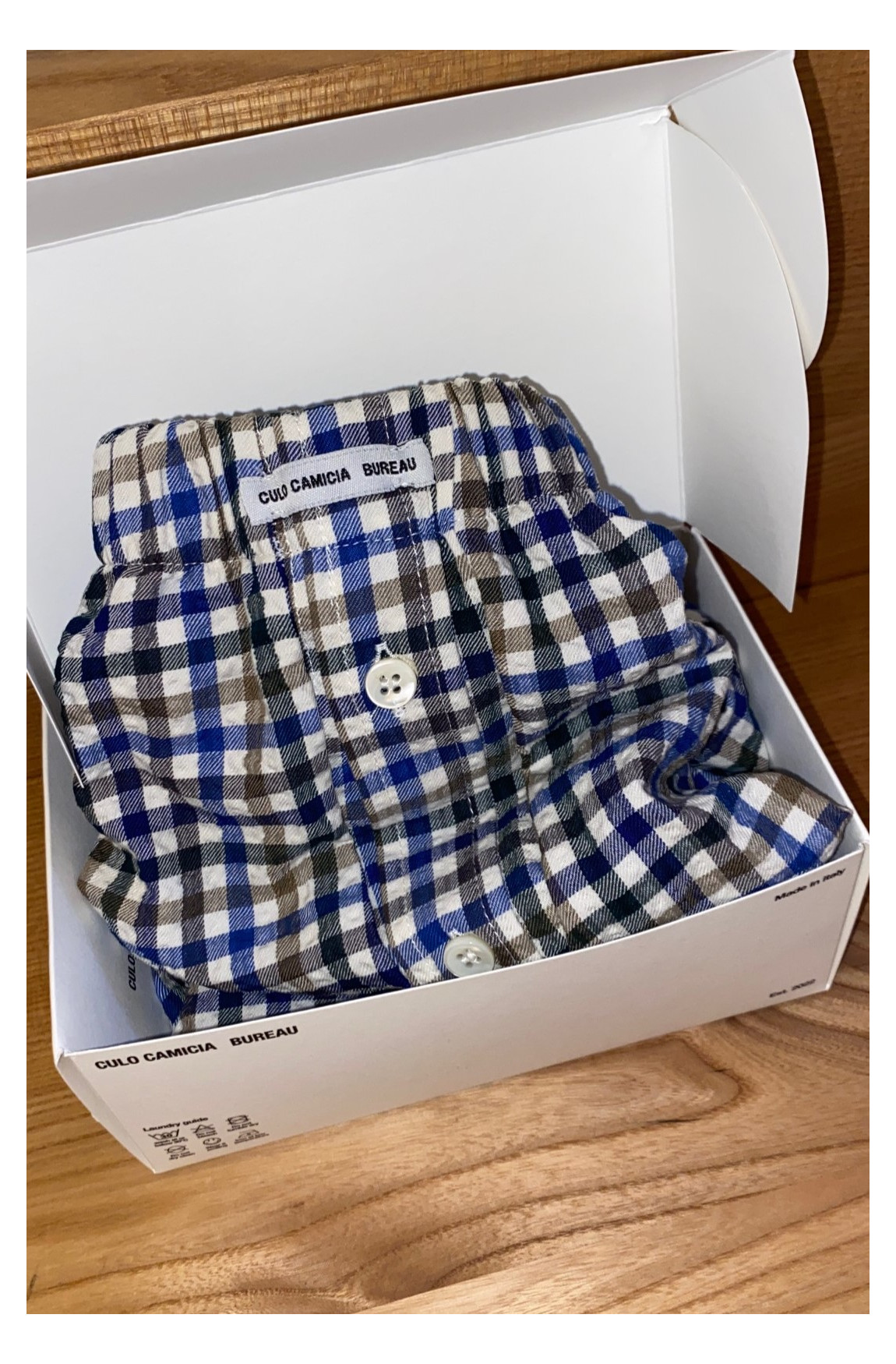 Boxer realizzati in collaborazione con il progetto startup CULO CAMICIA, realizzati con tessuti di scarto e camicie uniche della nostra collezione. 100% unici, 100% upcycled.